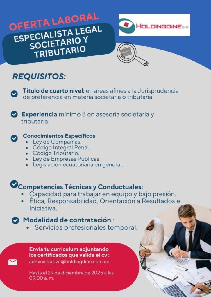 Especialista Legal Societario y Tributario